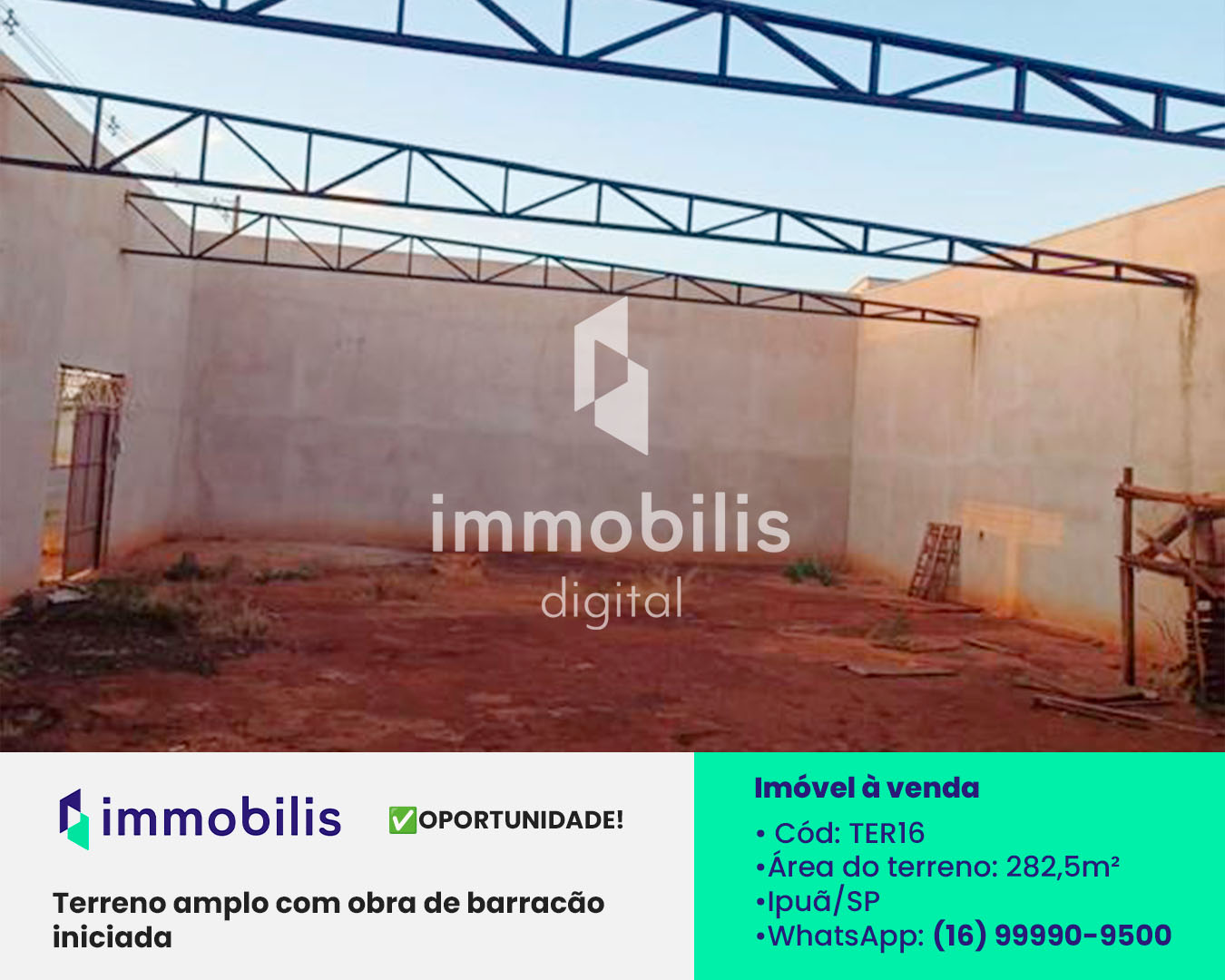 Oportunidade - Terreno 282,5m² - Obra de Barracão Iniciada- TER16